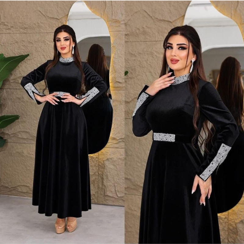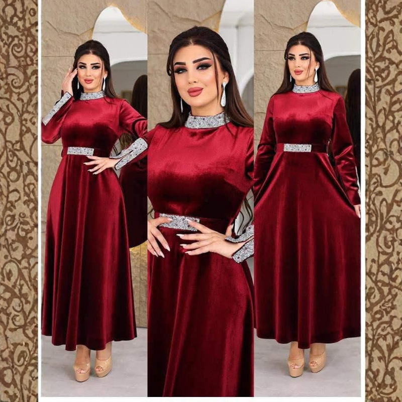 فستان سهرة مخمل لاكجري بتصميم ناعم وبسيط يمنحك إطلالة أنيقة بدون مبالغة.