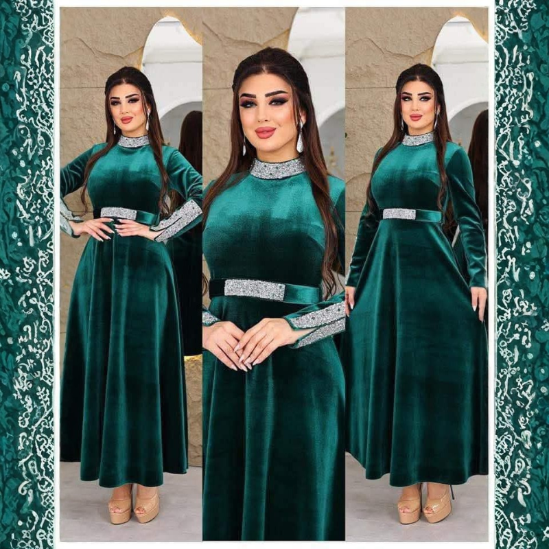 مصنوع من قماش مخمل ناعم يعطي عمق وفخامة للّون، مع قصّة مريحة One Size تناسب أوزان تقريبية من 50 حتى 80 كغم، ليكون خيارًا مثاليًا لمن تبحث عن فستان سهرة أنيق وسهل اللبس في نفس الوقت.