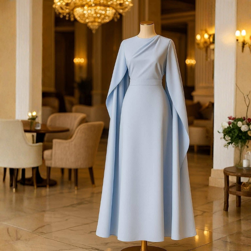 الخامة من قماش كريب ناعم وخفيف، مناسب للاستخدام اليومي في البيت أو العمل أو الطلعات السريعة، مع قصة واسعة One Size تناسب أغلب الأجسام من وزن 50 حتى 80 كغم بدون إحساس بالضيق.