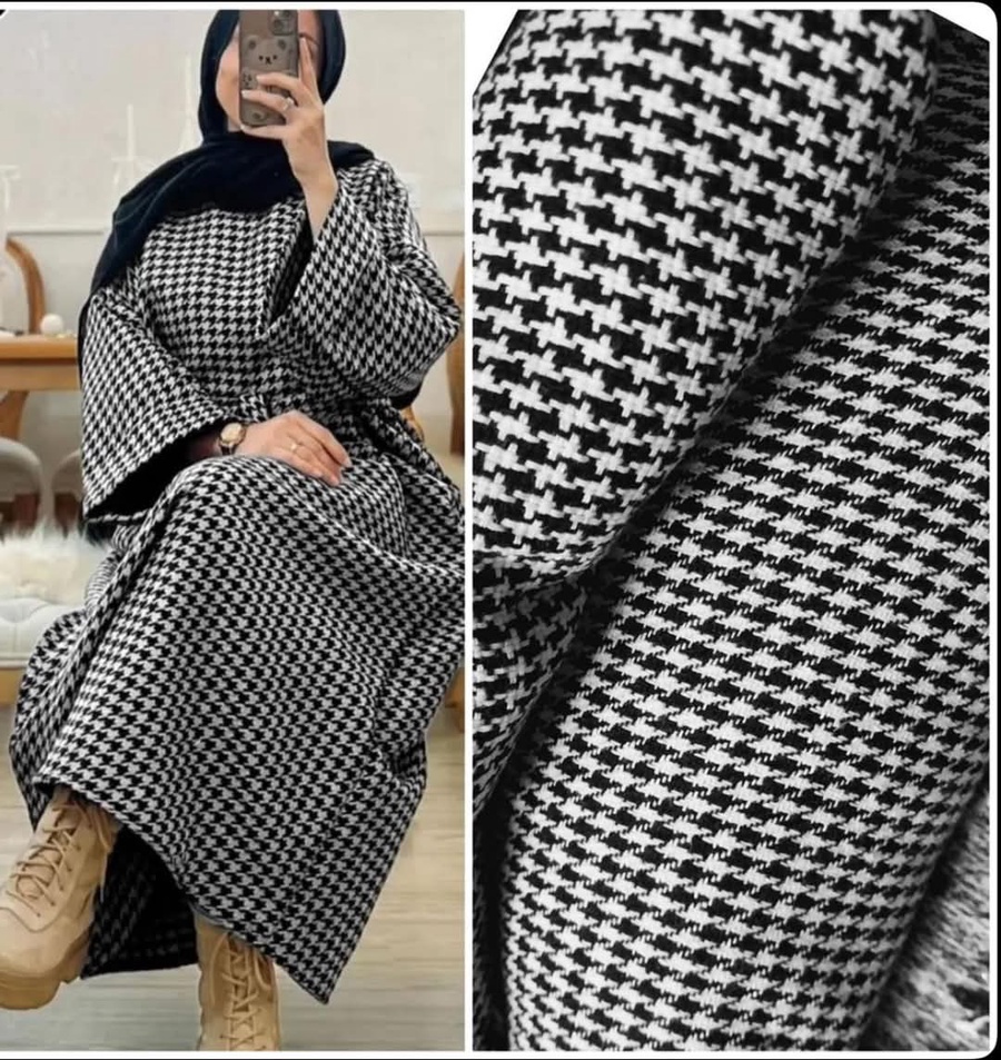 الخامة من قماش جوخ سميك نسبياً يساعد على الشعور بالدفء في الأجواء الباردة، مع قصّة One Size واسعة تناسب أوزان تقريبية من 50 حتى 80 كغم بدون إحساس بالضيق.