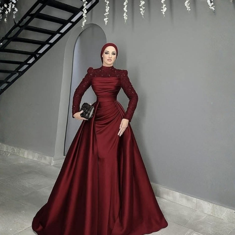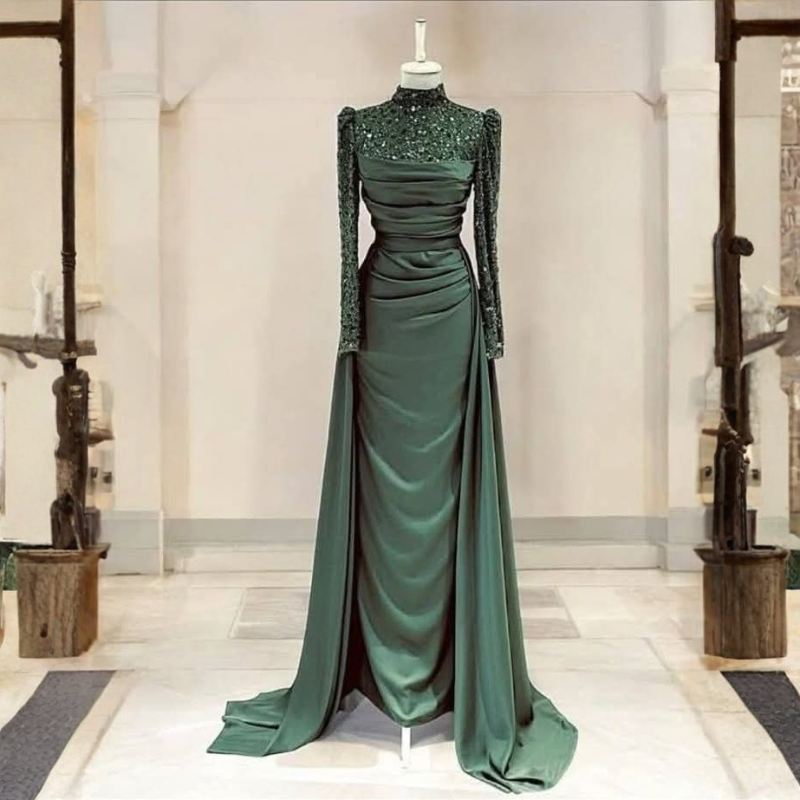 فستان سهرة ساتان بكفيار فاخر مصمّم ليمنحك حضورًا واضحًا في أي مناسبة.
